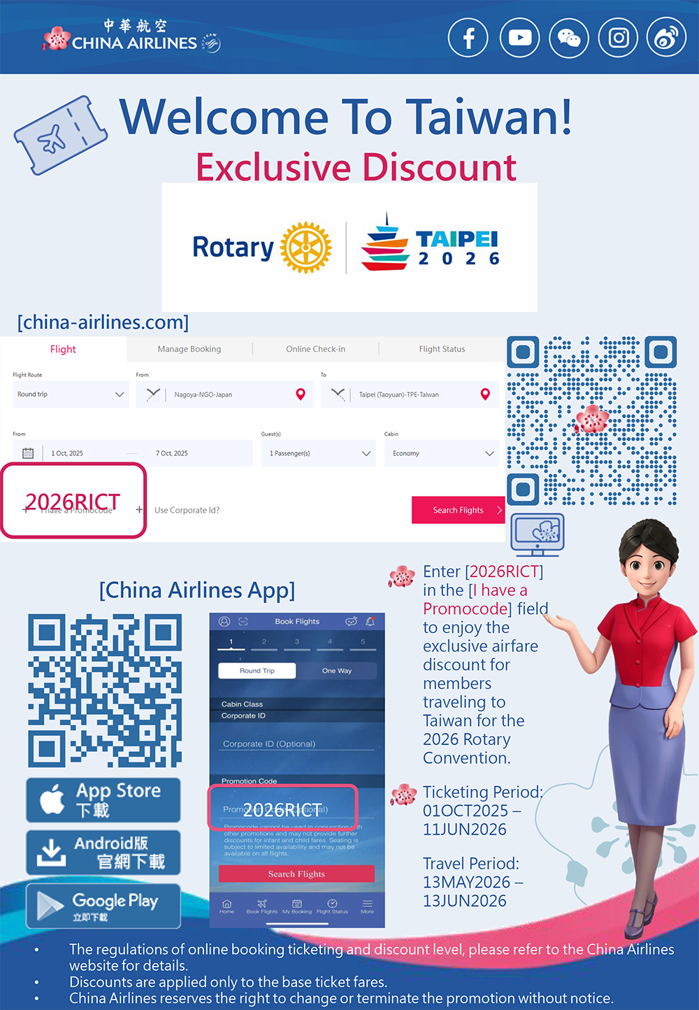 Have you booked your flight to Taipei yet? If not, and if you’re considering traveling with China Airlines between 13 May 2026 and 13 June 2026, be sure to enter 2026RICT as a promo code when you book your flight. Tickets must be purchased by 11 June 2026.